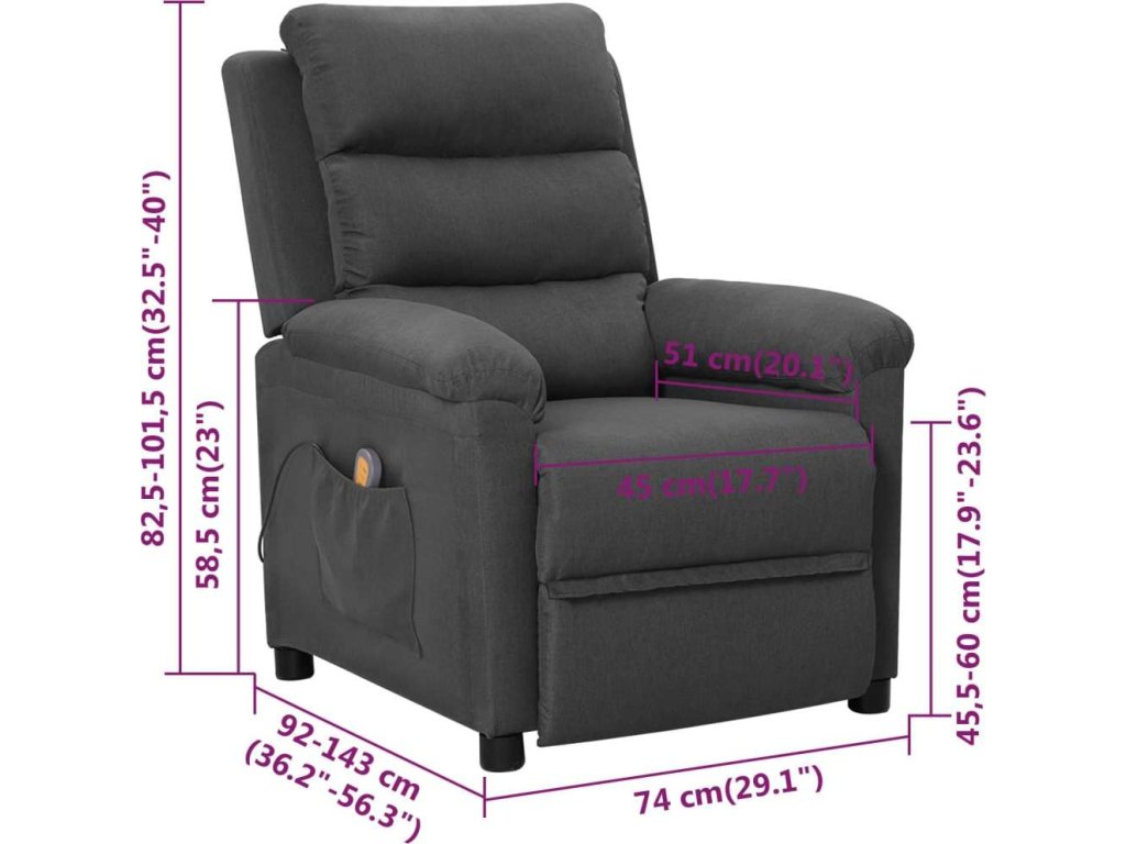 - Rozměry sklopeného křesla: 74 x 143 x 82,5 cm (Š x H x V)