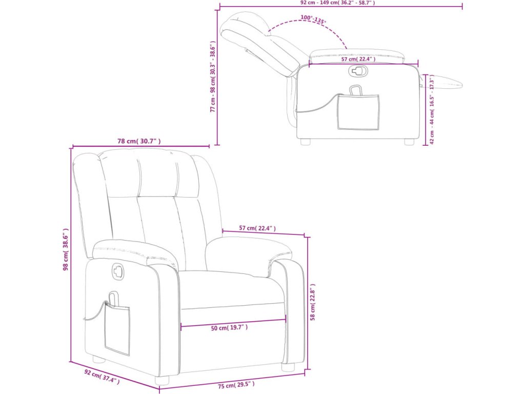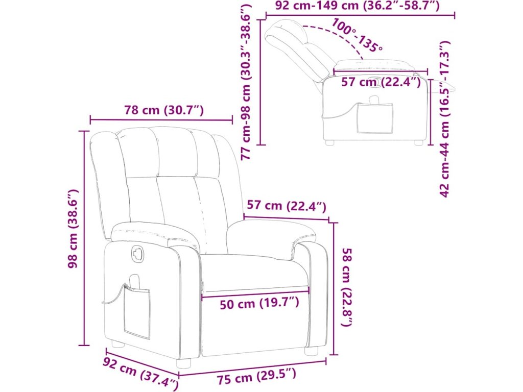 - Funkce ručního sklápění: Toto polohovací křeslo má na pravé straně páčku. Jednoduchým zatažením za páčku můžete ručně nastavit opěrku nohou a opěradlo do libovolné polohy podle svého pohodlí. Tato funkce umožňuje maximální náklon 135 stupňů. Opěradlo se navíc může snadným zatažením za páčku rychle vrátit do původní polohy.