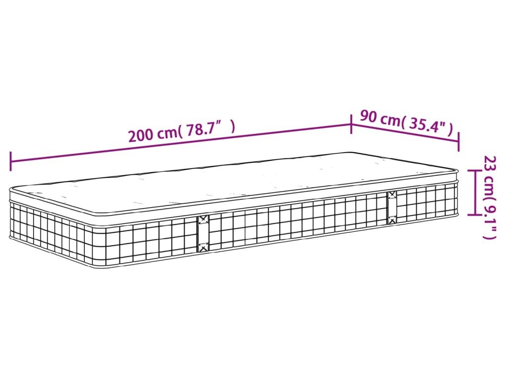 - Rozměry: 90 x 200 x 23 cm (Š x D x T)