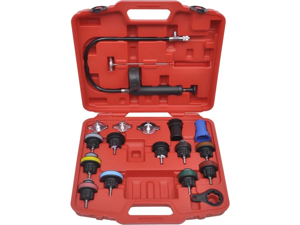 Tato vysoce kvalitní univerzální sada pro testování tlaku chladiče sestává z 18 kusů a bude ideálním dílenským nářadím pro každého automobilového nadšence, stejně jako pro profesionální automechaniky.