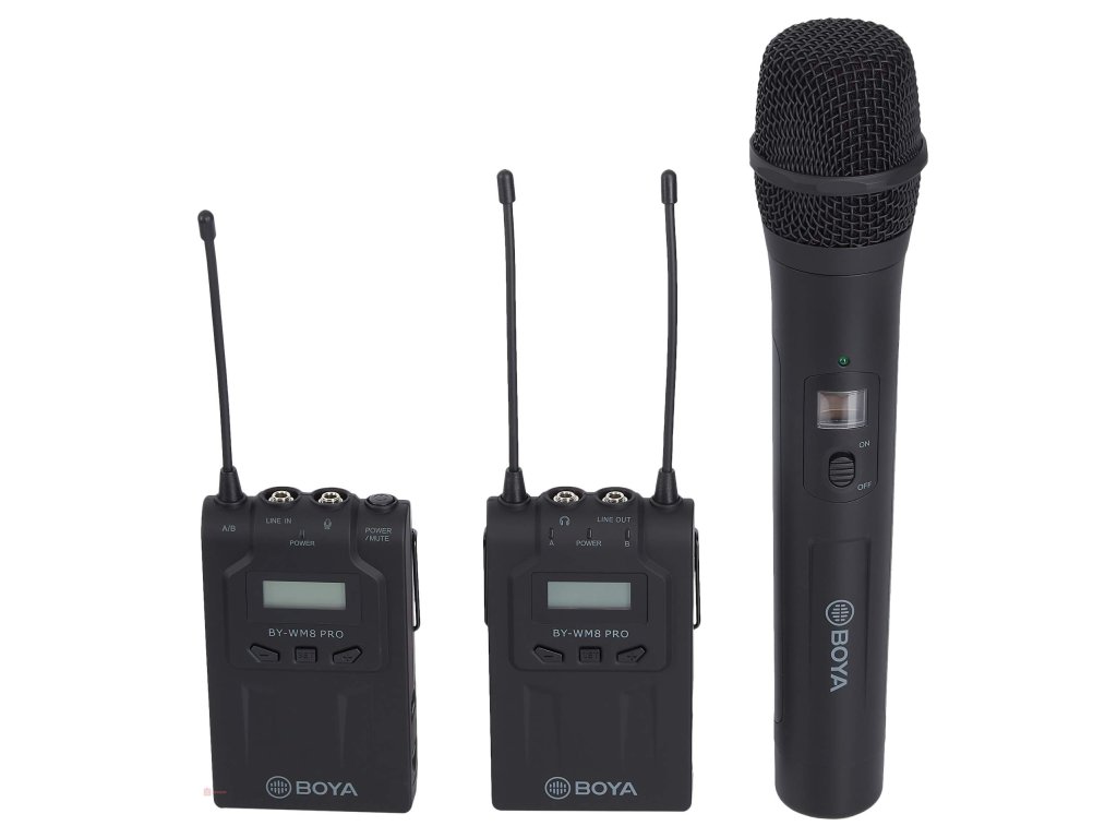 - 1x ruční mikrofon Boya BY-WHM8 Pro UHF