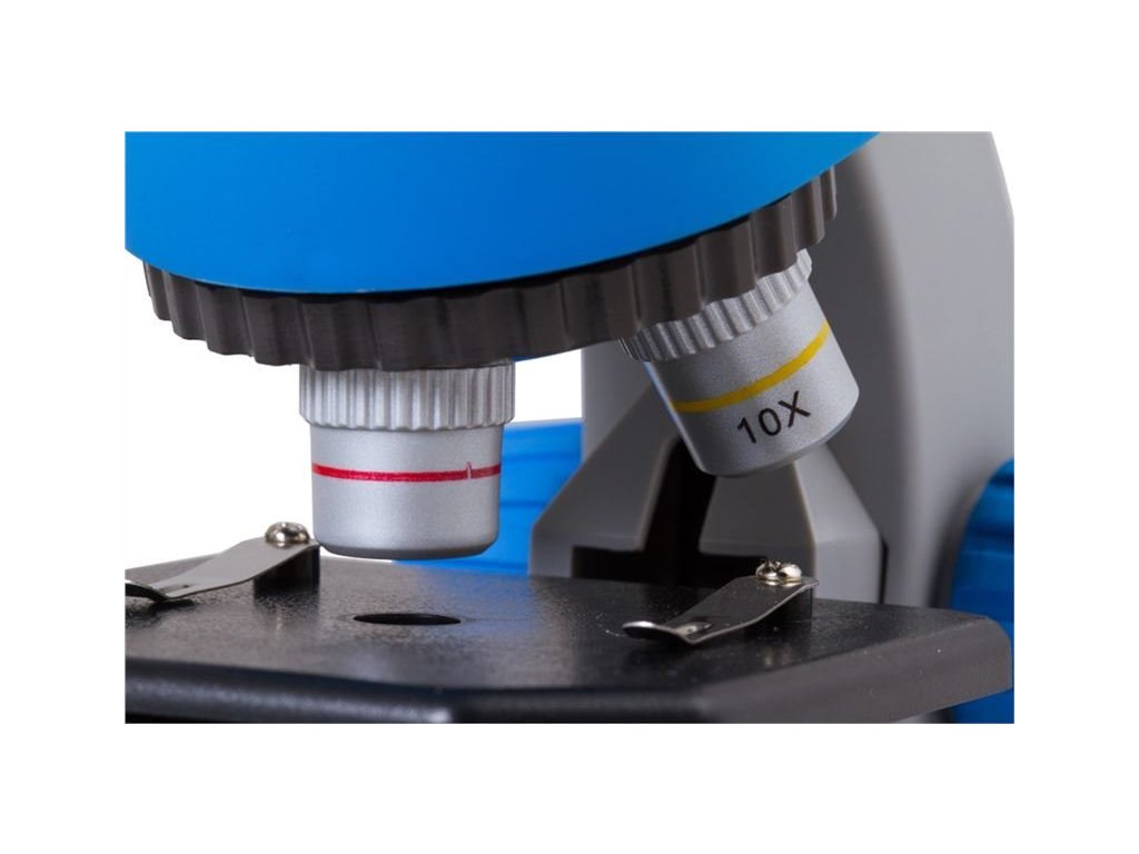 Barevný dětský mikroskop Bresser Junior 40x-640x je určený malým biologům. Je opatřen dvoupolohovým okulárem a LED osvětlením s nastavitelným jasem a proto je jeho používání snadné a intuitivní. Kapka vody, sněhové vločky, listy pokojových rostlin, kuchyňská sůl, černý pepř, jogurt z chladničky, stará měděná mince a další všední věci se tak ukážou ve zcela jiném světle. Rozsah zvětšení 40x až 640x potěší všechny zvídavé děti při zkoumání minimalistických předmětů.