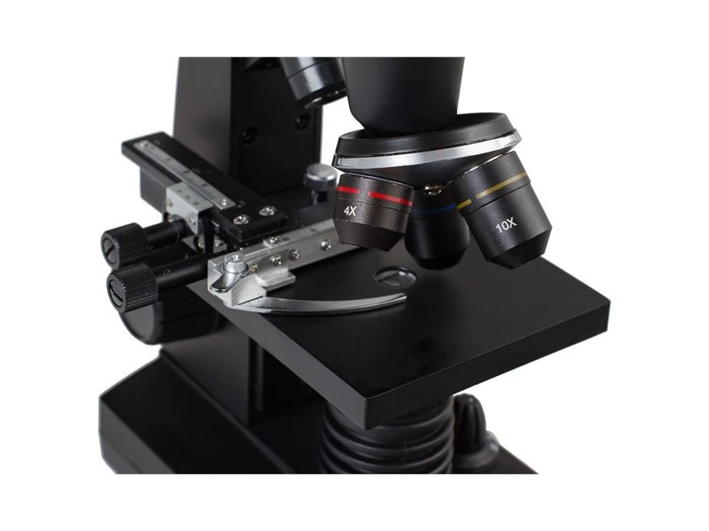Mikroskop je vybaven třemi objektivy. Revolverový nosič objektivů umožňuje rychlé nastavení požadovaného zvětšení. Místo okuláru je použit digitální fotoaparát 5 Mpx o rozlišení 3264 x 2448. Mikroskop nabízí optické zvětšení 50x – 500x a digitální zvětšení až 2000x.