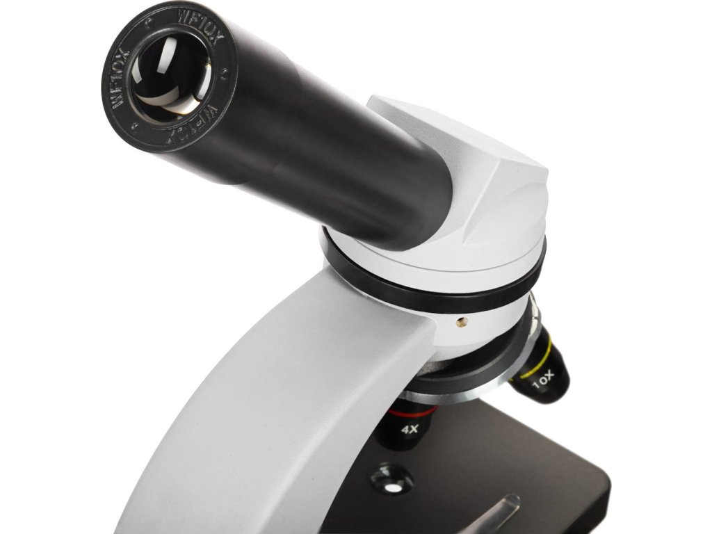 Monokulární hlava skloněná pod úhlem 30 ° usnadňuje delší pozorování, což ocení především nezkušení uživatelé. Mikroskop umožňuje pozorování malých objektů v celém rozsahu zvětšení.