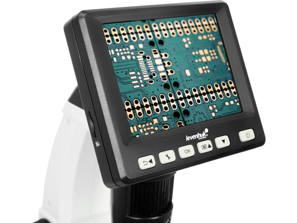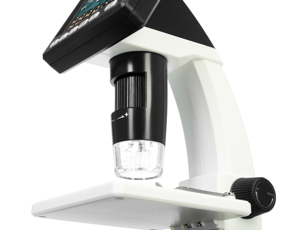 Barevný 3,5" LCD displej tohoto mikroskopu je vybaven tlačítky
