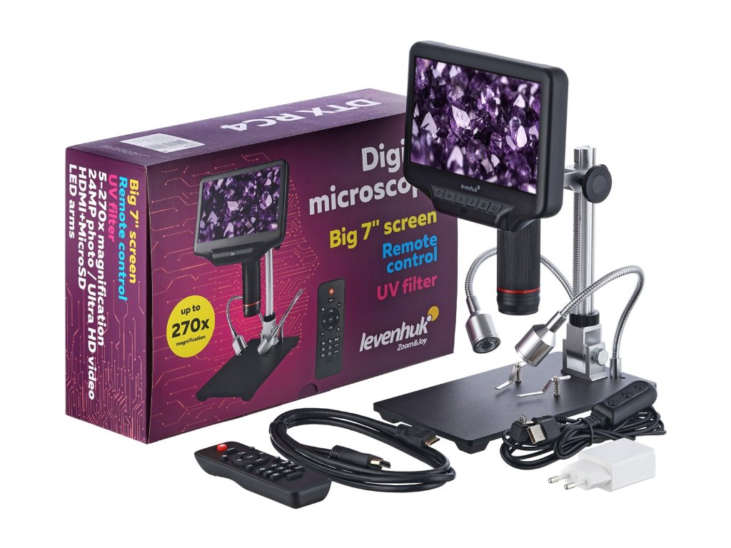 Dálkově ovládaný mikroskop Levenhuk DTX RC4 umožňuje studovat zvětšené vzorky, pořizovat snímky a zaznamenávat videa z výzkumu. A kvalita je působivá! Integrovaný snímač umožňuje zachytit snímky a videa v Ultra HD rozlišení! Takové optické a digitální možnosti umožňují zachytit všechny detaily pozorovaných objektů a studovat je tak podrobně, jak je to jen možné. Mikroskop je vynikajícím pomocníkem pro opravy elektroniky a přístrojů, hodnocení šperků a zkoumání geologických vzorků.