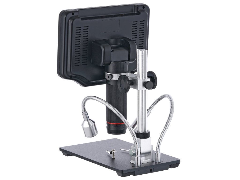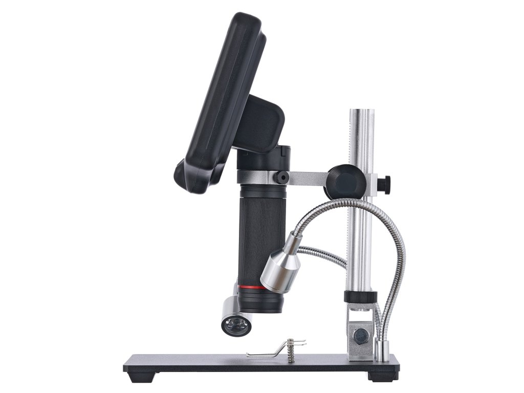 Integrovaná obrazovka má úhlopříčku 7”. Obraz z objektivu se zobrazuje barevně, kontrastně a je snadno čitelný. Obrazovku lze mírně naklonit pro pohodlnější používání. Celkové zvětšení lze upravit v rozsahu 5x až 270x a optické zvětšení v rozsahu 5x až 40x. Obraz lze také zobrazit na externí obrazovce pomocí portu HDMI.