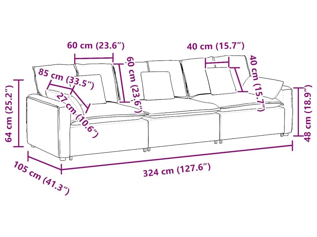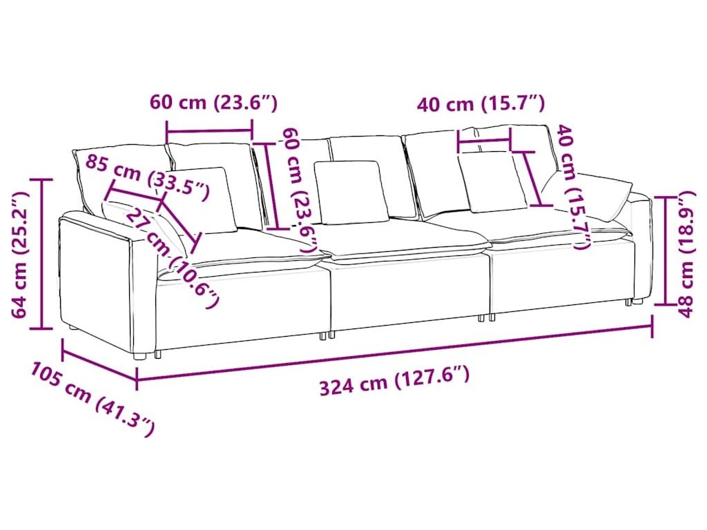 - Velkorysá místa k sezení: Díky třem modulárním částem poskytuje pohovka dostatek místa k pohodlnému lenošení, takže je ideální pro rodinné sešlosti nebo pro zábavu s přáteli. Její prostorný design zajistí, že si všichni společně odpočinou, ať už ji použijete v útulném obývacím pokoji nebo v otevřeném prostoru.