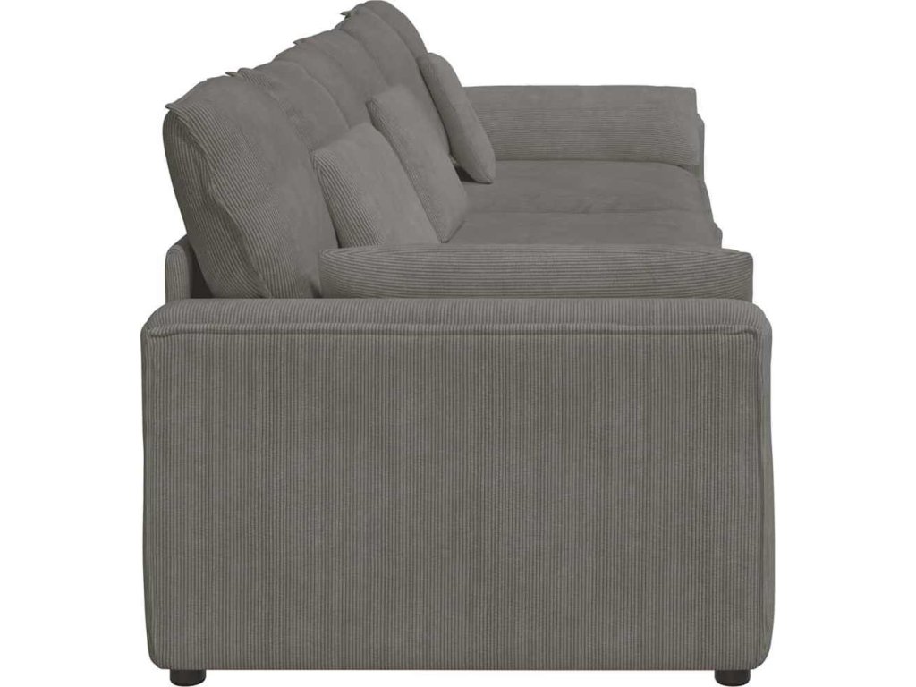 - Extra pohodlí: Pohovka s opěrnými područkami a textilénovým sedákem nabízí nepřekonatelné pohodlí pro relaxaci a je vybavena polštáři, které obepínají tvar vašeho těla pro maximální požitek z lenošení.