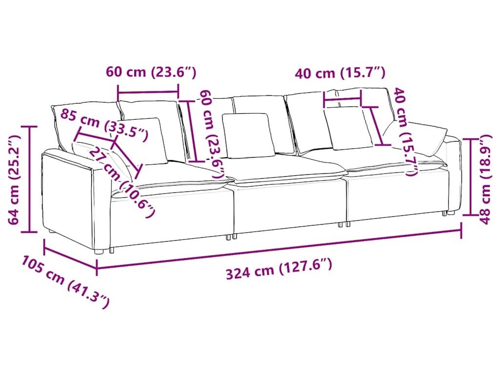 - Celkové rozměry: 324 x 105 x 64 cm (š x h x v)