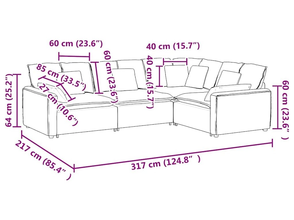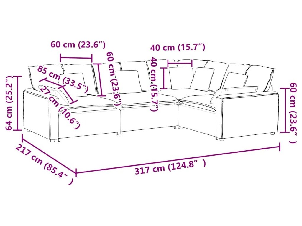 - Velkorysá místa k sezení: Díky čtyřem modulárním sekcím poskytuje pohovka dostatek místa k pohodlnému lenošení, takže je ideální pro rodinné sešlosti nebo pro zábavu s přáteli. Její prostorný design zajistí, že si všichni společně odpočinou, ať už ji použijete v útulném obývacím pokoji nebo v otevřeném prostoru.
