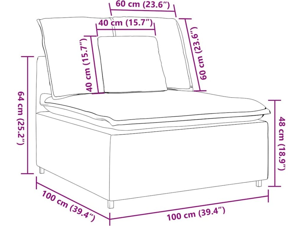 Modulární středový modul pohovky s polštáři 100 cm [4104429]