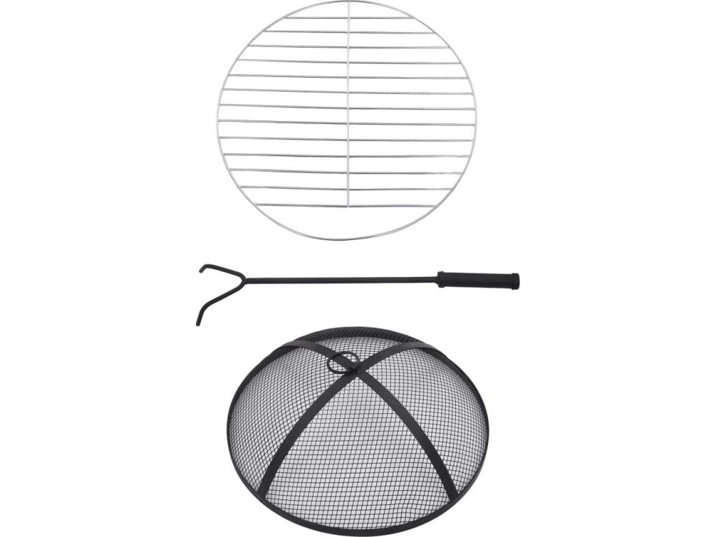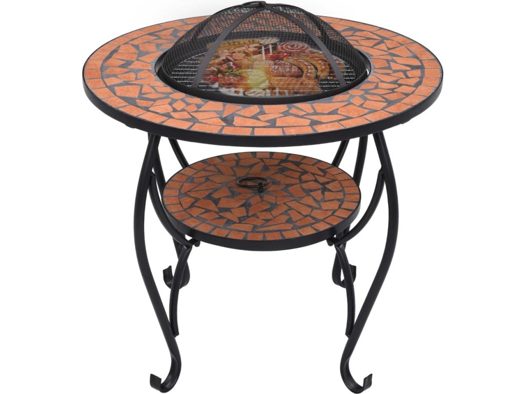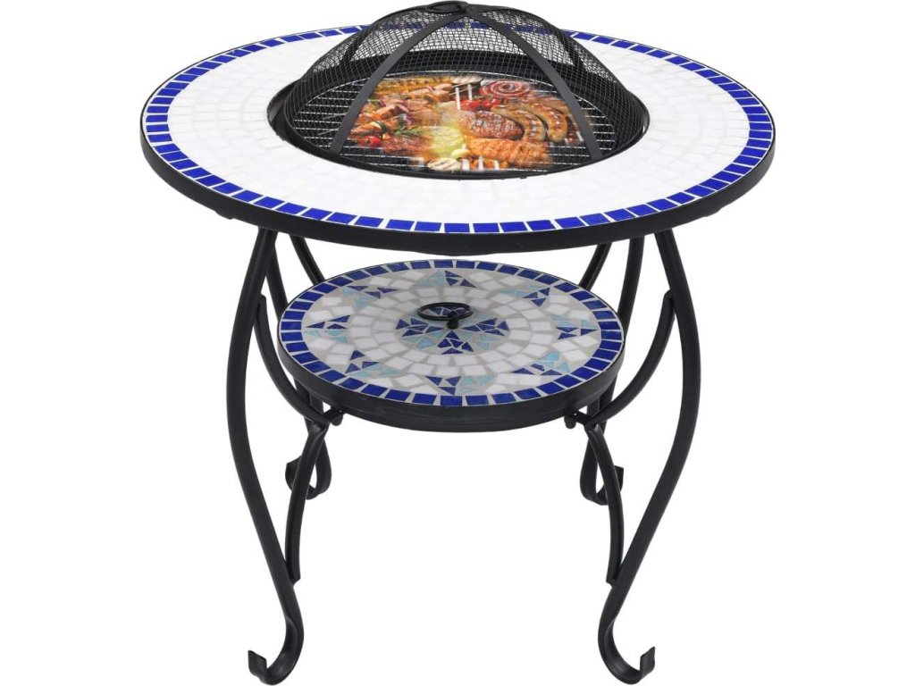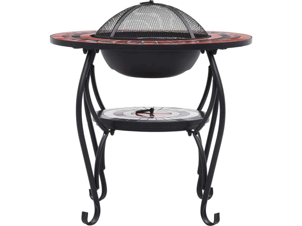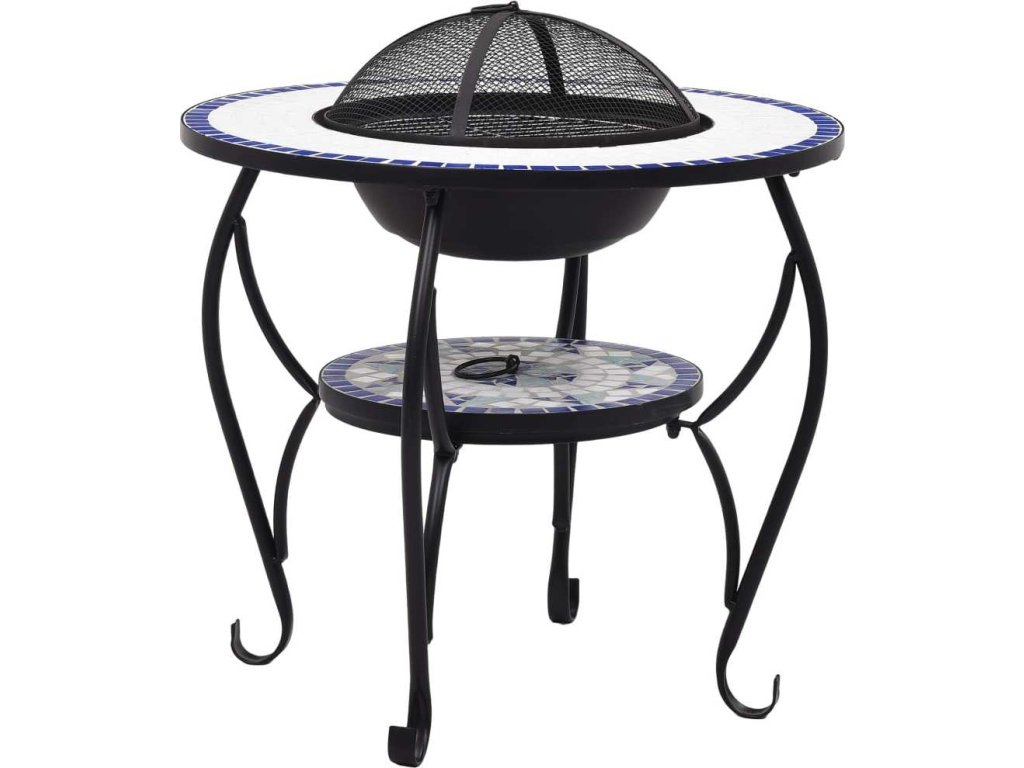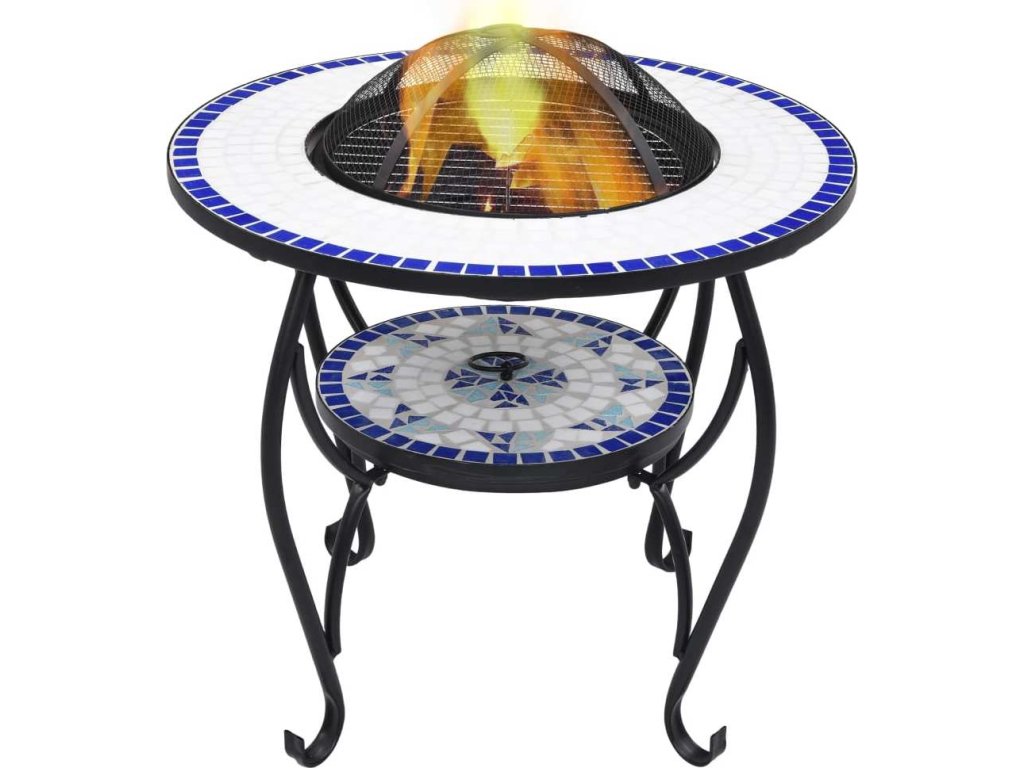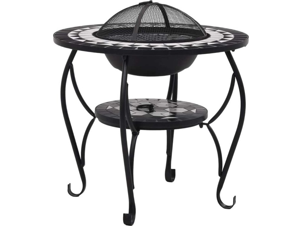 Ohniště je zhotoveno z oceli a výborně pohlcuje a vyzařuje teplo. Můžete v něm spalovat suché dřevo, polínka nebo uhlí. Podpírá ho čtyřnohý stojan. Bezpečnostní síťovaný kryt, který je součástí balení, vám umožní sledovat hořící oheň a zároveň vás ochrání před odletujícími jiskrami a popelem, protože ohniště bezpečně zakrývá. Odstranit ho můžete pohrabáčem, jenž vám rovněž poslouží k přerovnávání hořících polínek či uhlí. Stolek s ohništěm lze navíc také použít jako gril. Jeho kulatý keramický povrch představuje ideální místo k odkládání nápojů a grilovacího příslušenství. Upozorňujeme, že tento výrobek není vhodné ponechávat venku v chladných podmínkách.