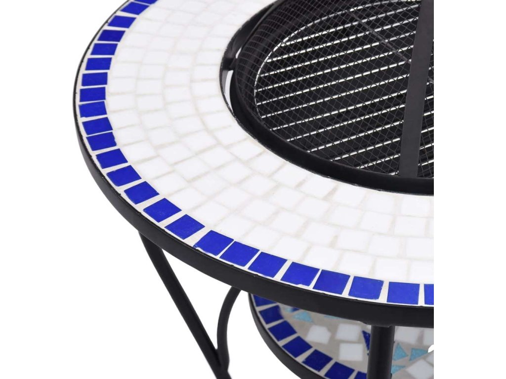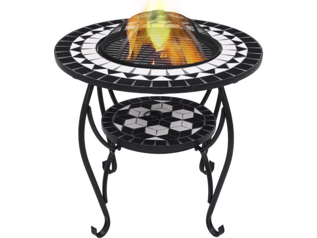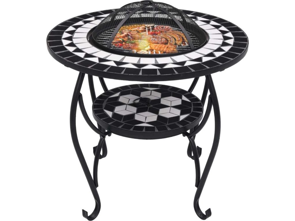 Mozaikový stolek s ohništěm a bílý 68 cm keramika [46724]