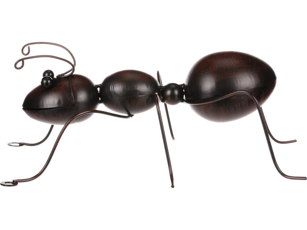 Celokovová nástěnná dekorace v podobě velkého černého mravence je skvělým prostředkem, jak přidat do vašeho prostoru zábavný a netradiční prvek. Jeho několikanásobně větší rozměr ve srovnání se skutečnými mravenci mu dodává na nepřehlédnutelnosti. Cíleně umístěnými háčky na konci nožiček bude při zavěšení působit dojmem, že leze po zdi. Tento kolosální mravenec je kompletně celý kovový , a je tak ideální dekorací zejména pro zdobení venkovních prostor, jako jsou stěny pergol, altánků, kůlen, zahradních domků nebo vnějších zdí domu. Díky své originalitě zaujme pohledy všech vašich návštěvníků, a bude pro všechny inspirací k vytváření jedinečné výzdoby.