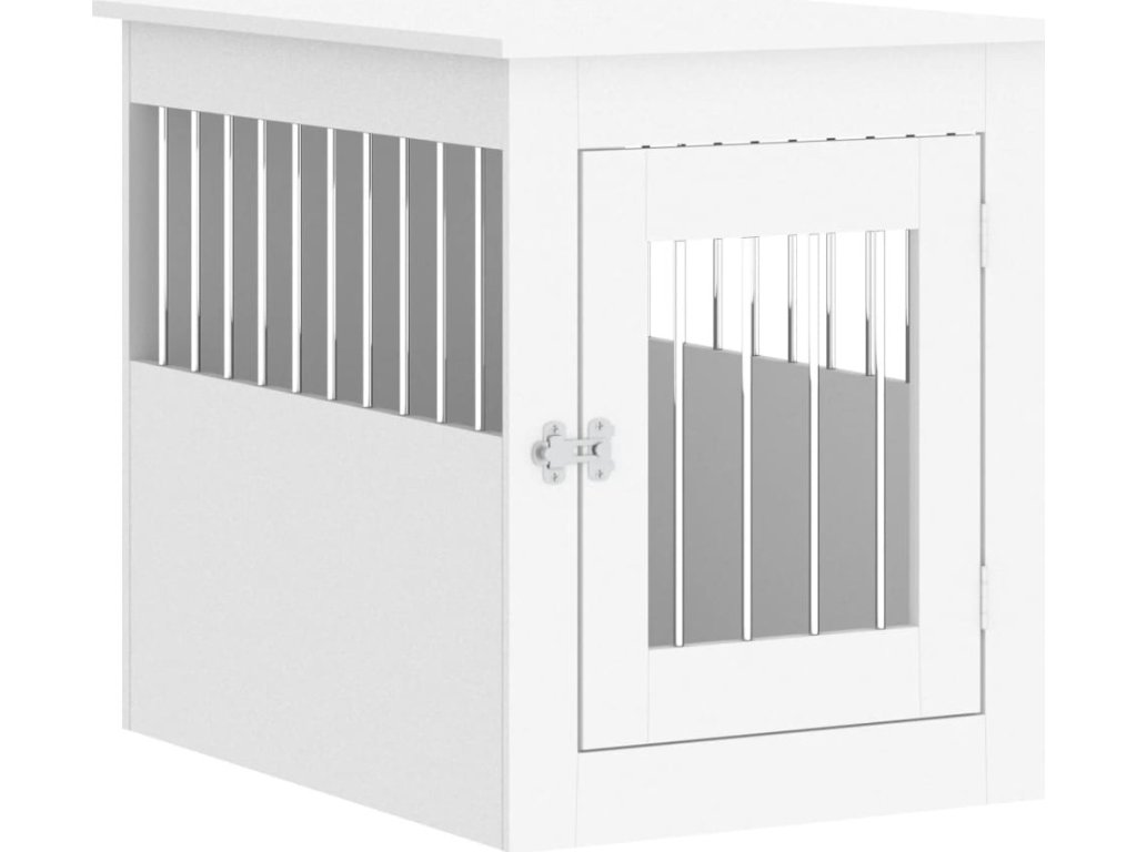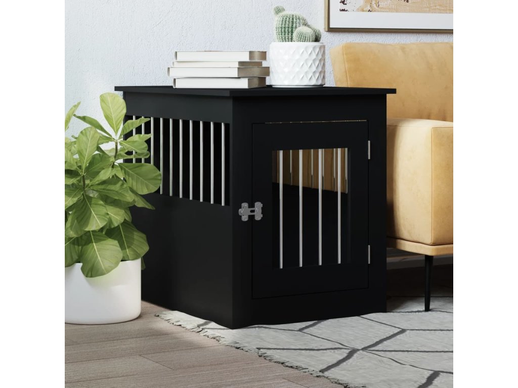 Tento psí nábytek, který slouží jako psí klec i koncový stolek, je praktickým a poutavým doplňkem vašeho obývacího pokoje.