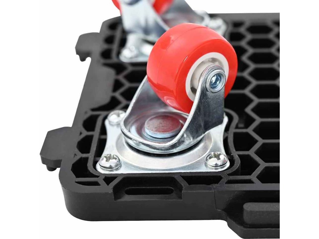 - Kolečka otočná o 360°: 4 gumová kolečka jsou vybavena kuličkovými ložisky otočnými o 360°, což zajišťuje plynulý, tichý a bezproblémový pohyb.