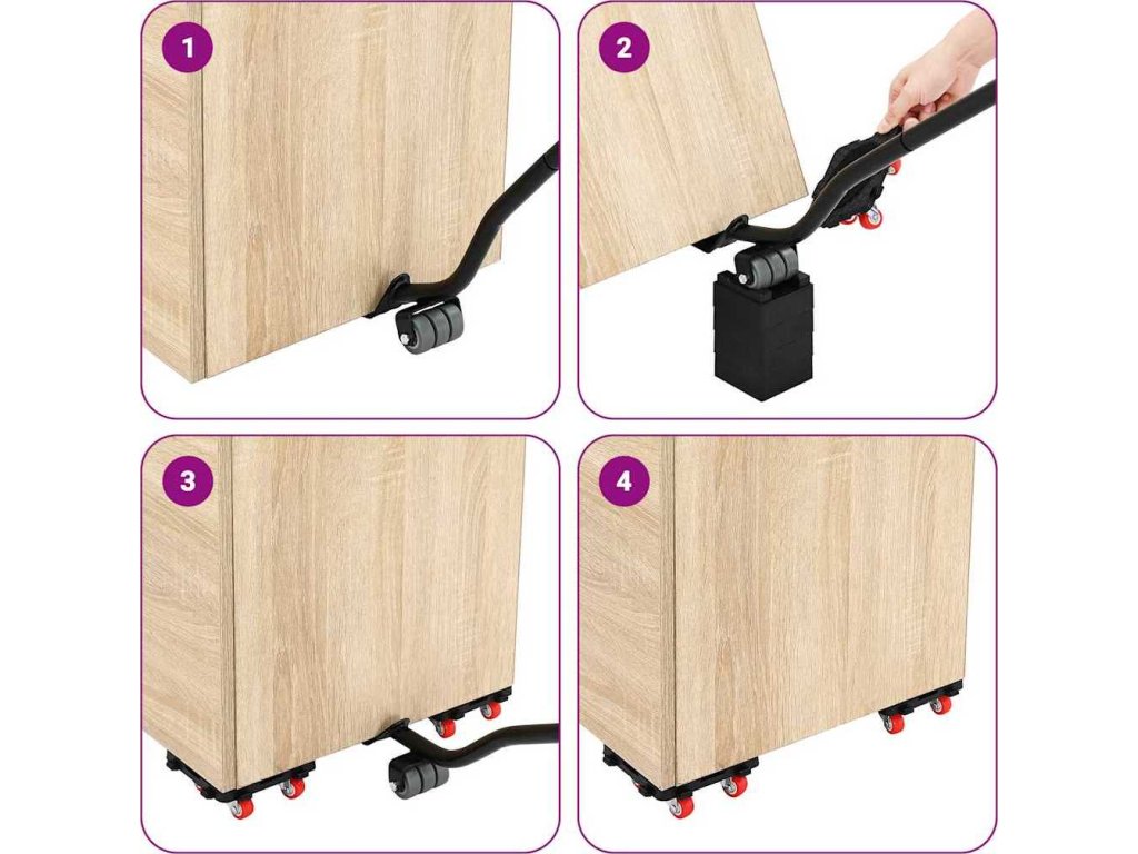 - Snadné použití: Tato sada pro stěhování nábytku obsahuje zvedák s dlouhou tyčí a 4 zvedáky, které umožňují snadné zasunutí páky pod nábytek a jeho zvedání, což usnadňuje zasunutí vozíku s kolečky pod něj. Tato funkce nabízí pohodlné a snadné řešení pro přemisťování těžkých předmětů.