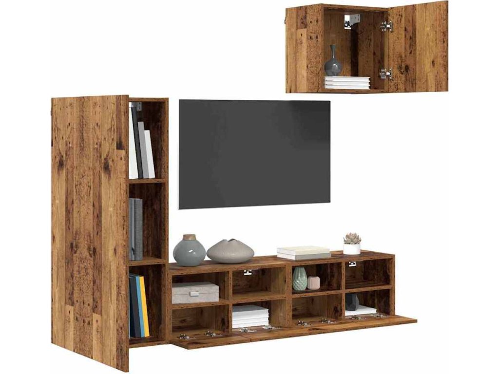 Nábytkové stěny pro TV 4 pcs Staré dřevo kompozitní dřevo [3402779]