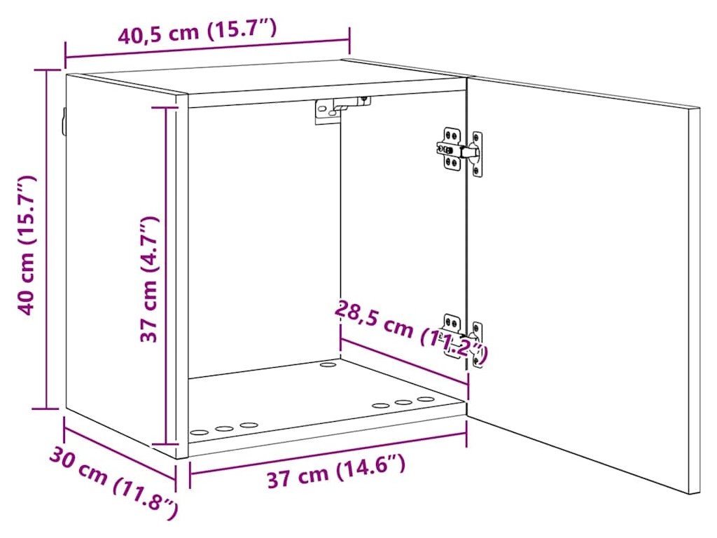 - 1 x Skříň na zeď: 40.5 x 30 x 40 cm (Š x H x V)