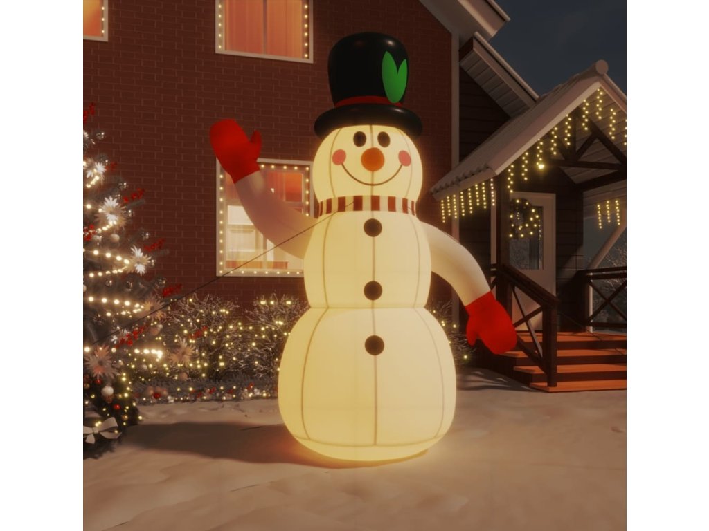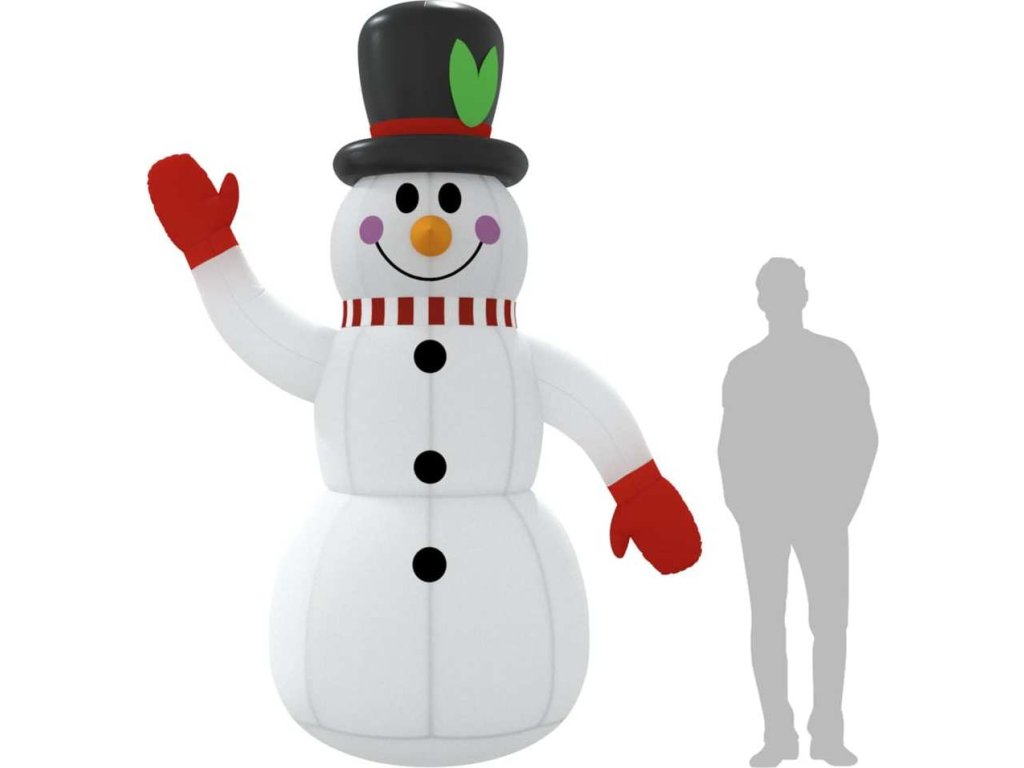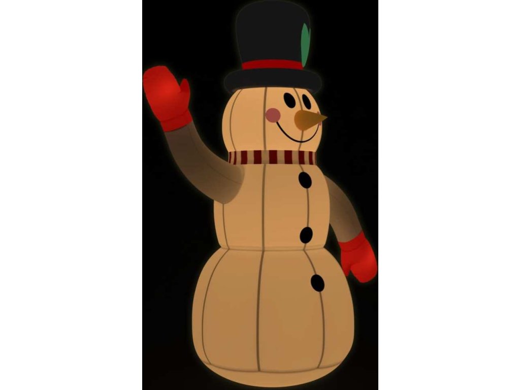 - Vestavěná LED světla: Nafukovací sněhulák má uvnitř zabudovaná LED světla, která umocňují sváteční atmosféru a dávají vyniknout vašemu domu.