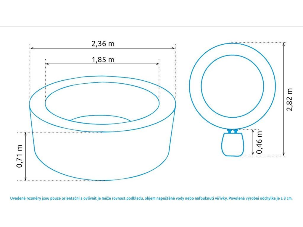 - Vnější průměr: 236 cm (po naplnění vodou, tolerance ± 5%)
