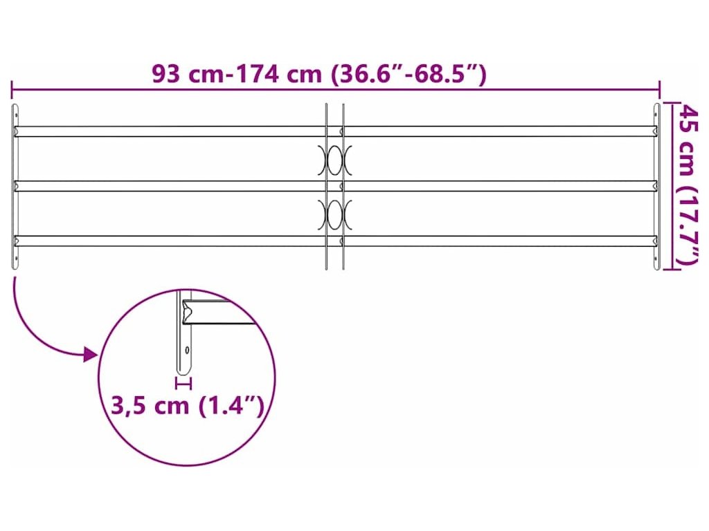 Tato bezpečnostní mříž se instaluje horizontálně s nastavením šířky v rozmezí 1000–1500 mm, aby se vešla do různých oken. Naše okenní mříž není jen vysoce bezpečnostní volbou, ale také krásným kusem kvalitní řemeslné práce.
