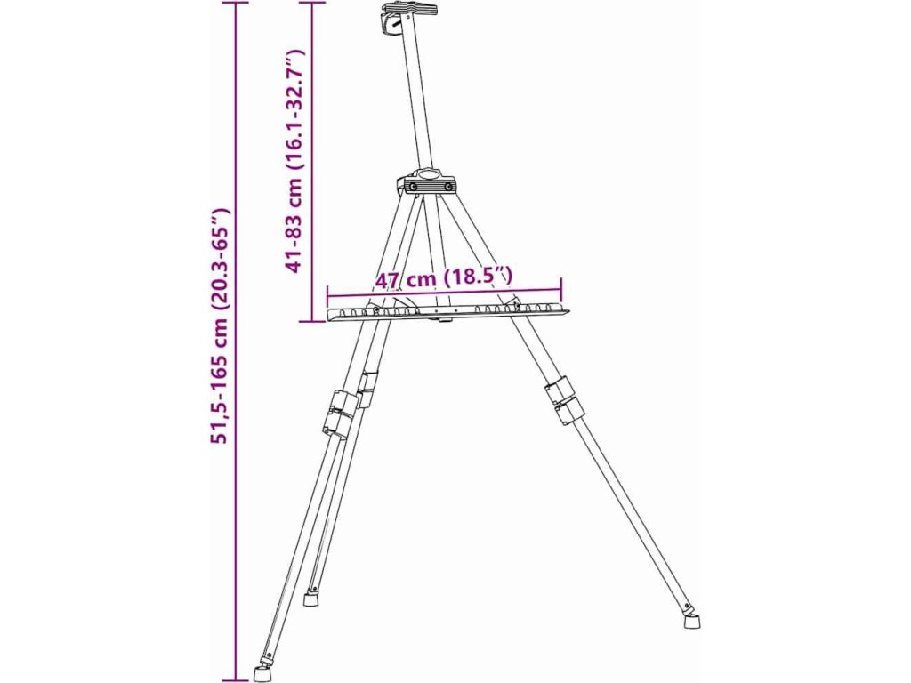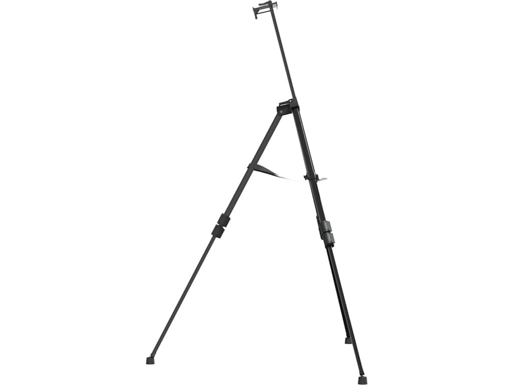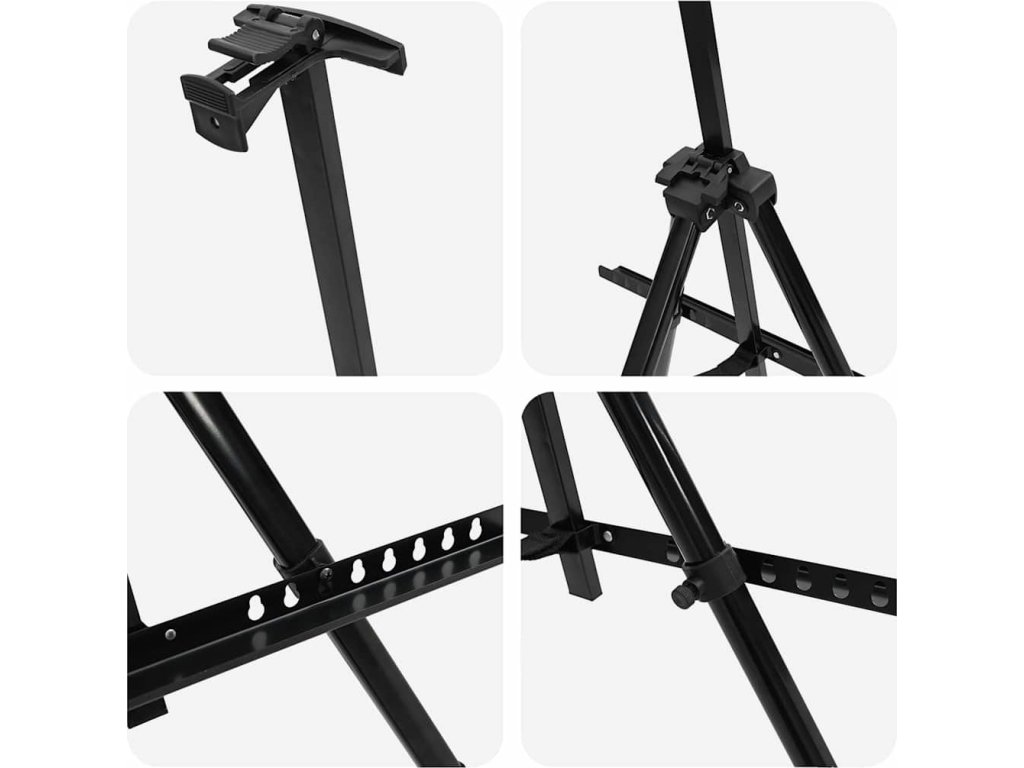 - Stabilní rám: Tento malířský stojan je vyroben z kovu. Protiskluzové gumové nožičky poskytují lepší přilnavost, takže je stojan stabilnější.