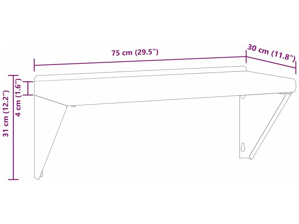 Nástěnná police 75 x 30 x 31 cm stříbrná nerezová ocel [30275]