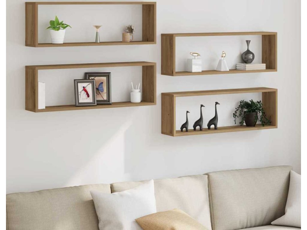 Nástěnné poličky s policí 4 pcs Umělecký dub 80 x 15 x 26 cm [862642]