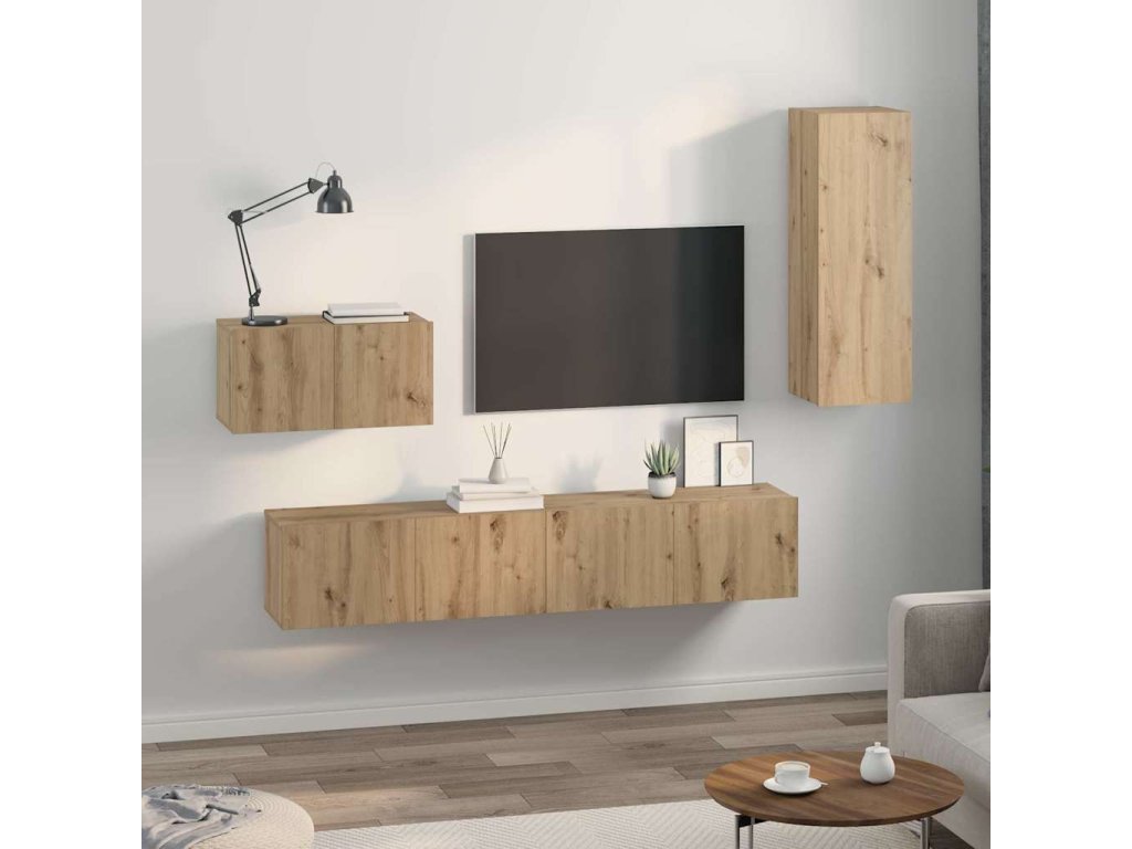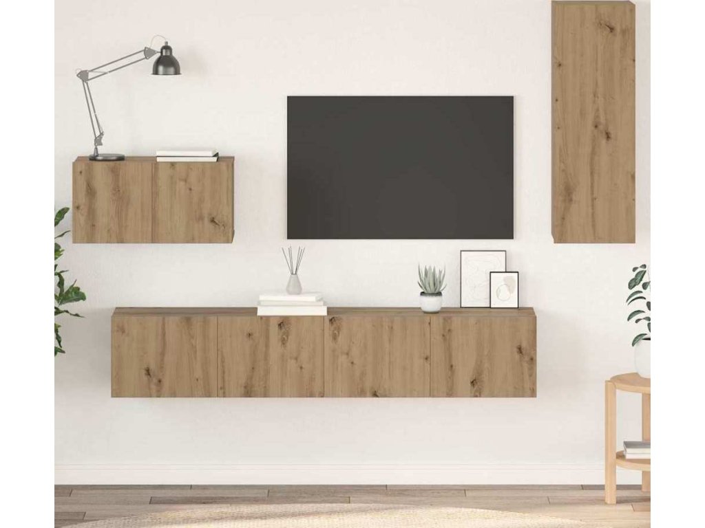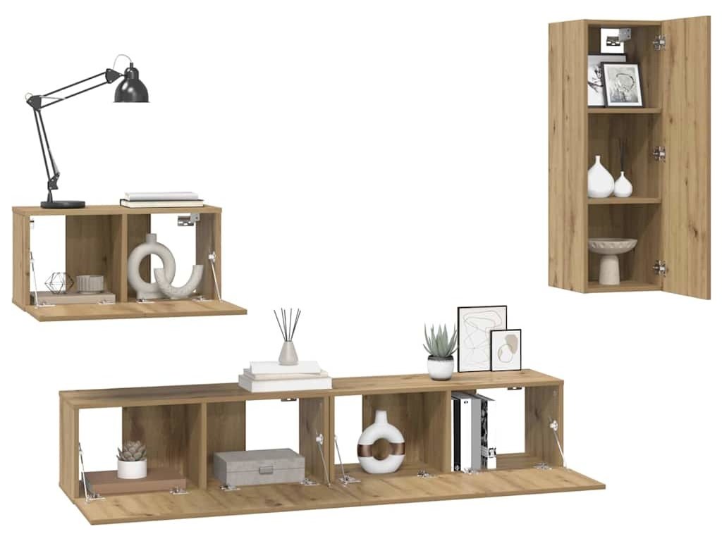 Nástěnná skříň na TV 4 pcs Artisanový dub kompozitní dřevo [3393467]