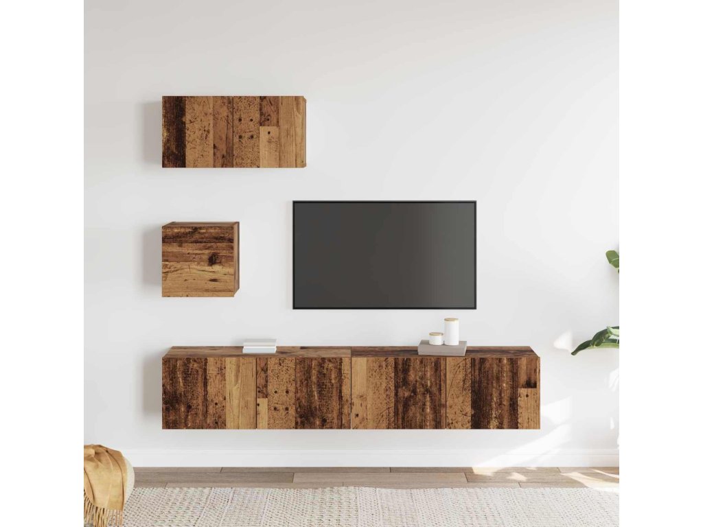 Sestava TV skříněk Nástěnný 3 pcs Staré dřevo kompozitní dřevo [3393138]