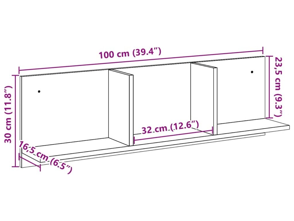 - Rozměry: 100 x 16,5 x 30 cm (Š x H x V)