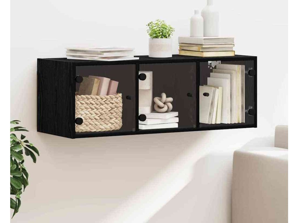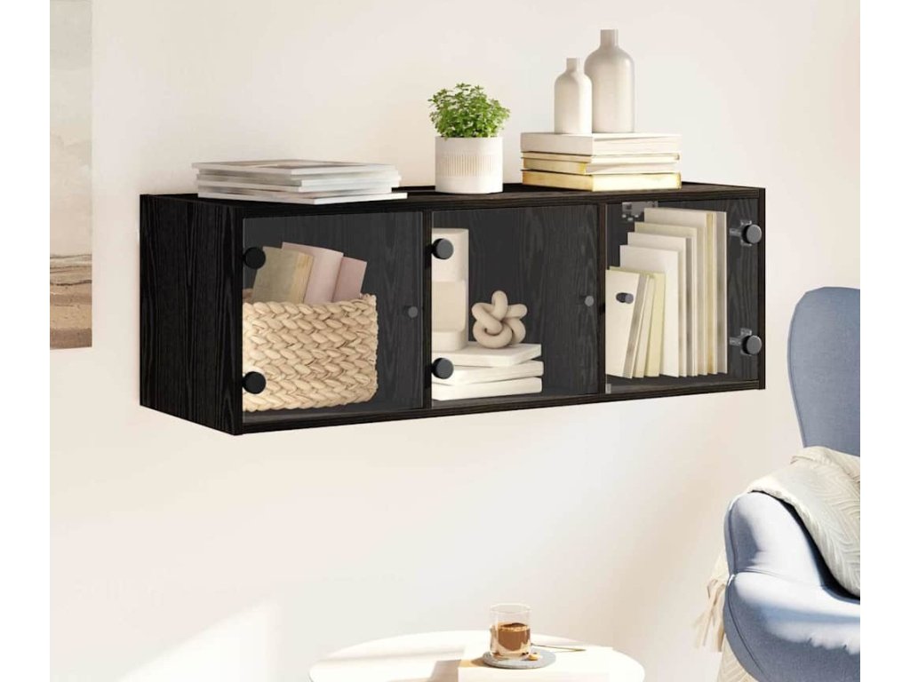 - Inženýrské dřevo a skleněné dveře Skříň je vyrobená z kvalitního inženýrského dřeva, které zaručuje dlouhou životnost. Skleněné dveře dodávají moderní vzhled a umožňují vidět, co je uvnitř, čímž se zlepšuje jak vzhled, tak funkčnost.