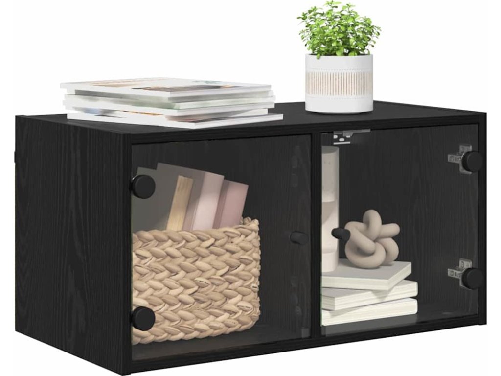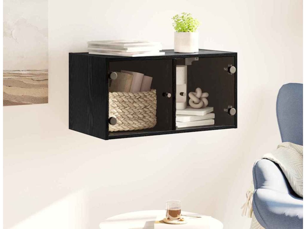 Tato moderní skříň na zeď s prosklenými dveřmi je skvělým úložným řešením pro každý moderní domov. S čistými liniemi a minimalistickým stylem nabízí funkčnost i vkus. Ideální pro organizaci a vystavení věcí v obývacích pokojích nebo jiných vnitřních prostorách, má hladkou obdélníkovou fasádu a skleněné dveře, které dodávají estetický prvek a zpřístupňují obsah.