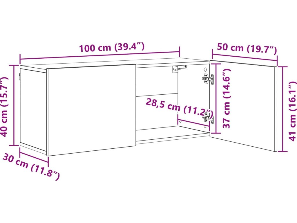 - 2 x TV stěnová skříň: 100 x 30 x 41 cm (DxŠxV)