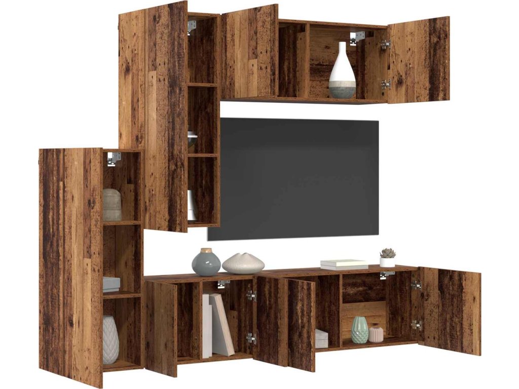 Nástěnná skříňka na TV 5 pcs Staré dřevo kompozitní dřevo [3402776]