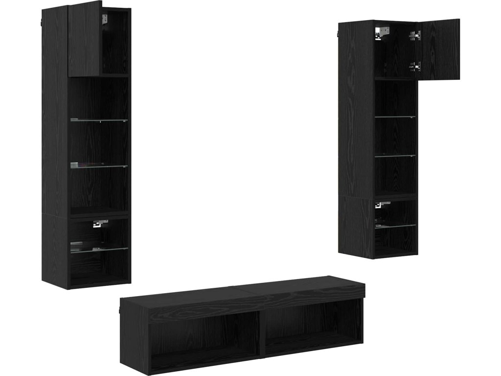 - Funkční police: Policové desky z inženýrského dřeva v této jednotce skvěle podporují různé předměty, od DVD po dekorace. Jsou praktické a stylové, přizpůsobí se různým úložným potřebám, aniž by ztrácely na estetice.