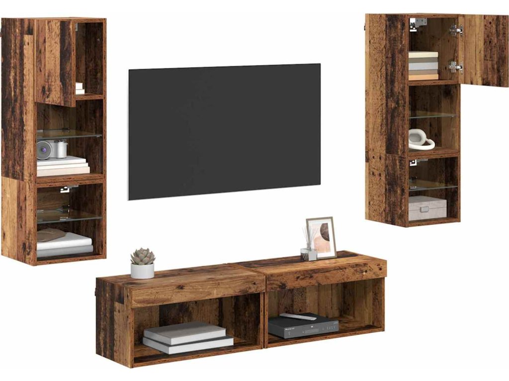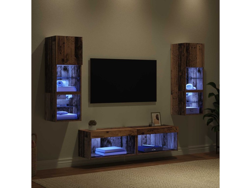 Nástěnná skříňka na TV 6 pcs Staré dřevo kompozitní dřevo [3402929]