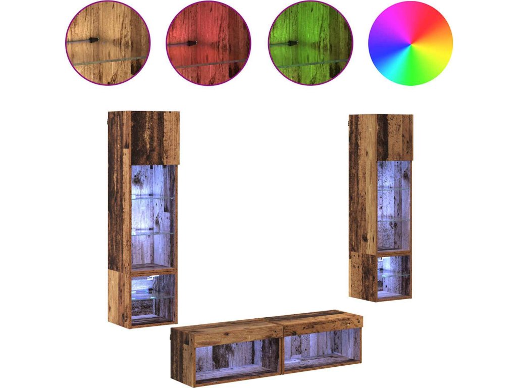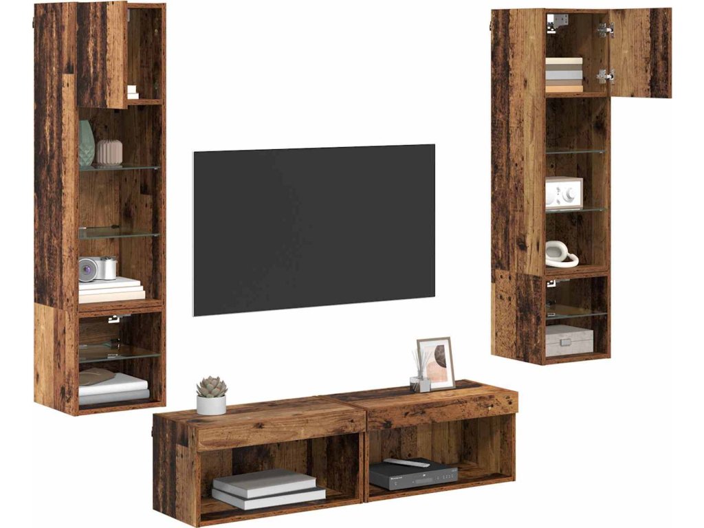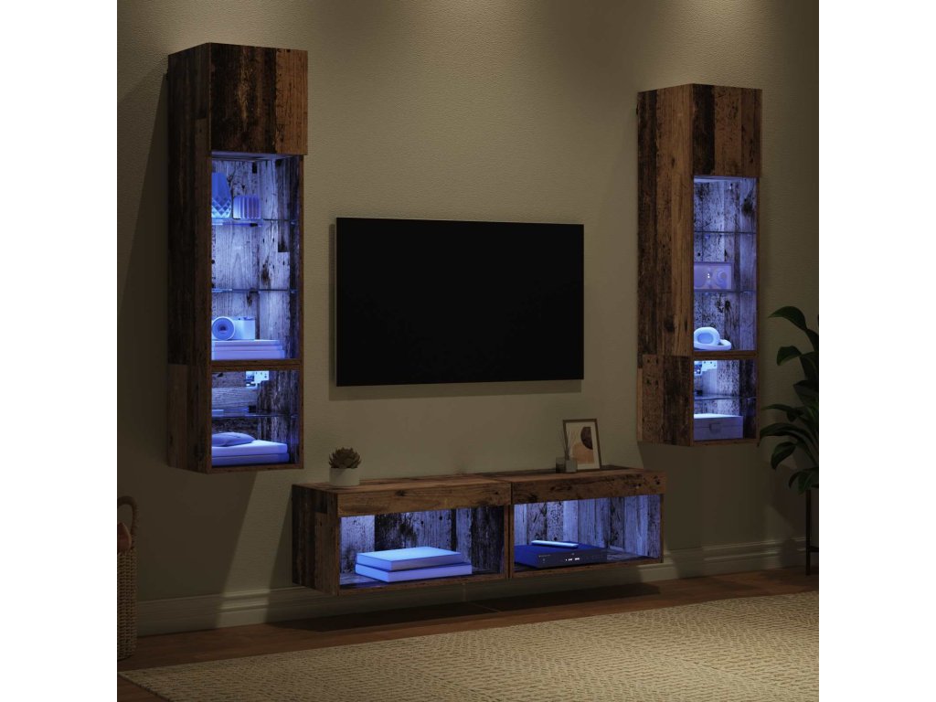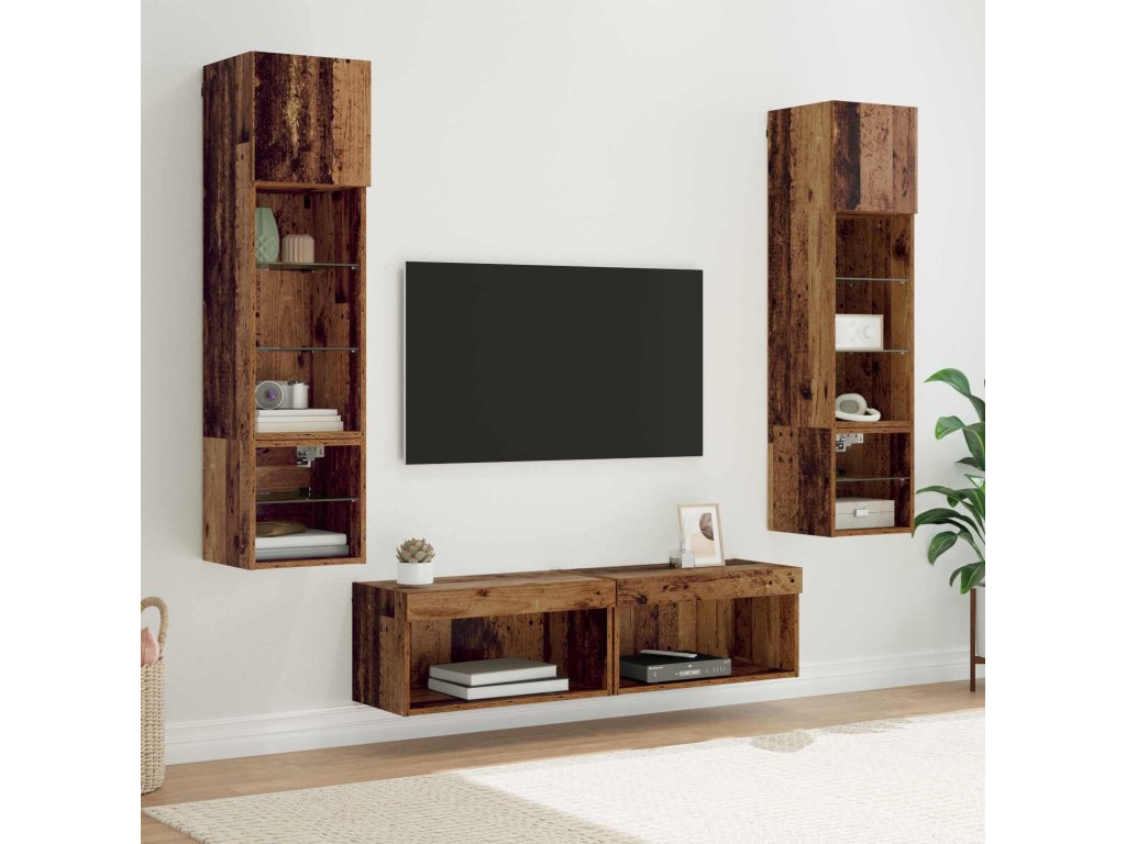 Nástěnná skříňka na TV 6 pcs Staré dřevo kompozitní dřevo [3402932]