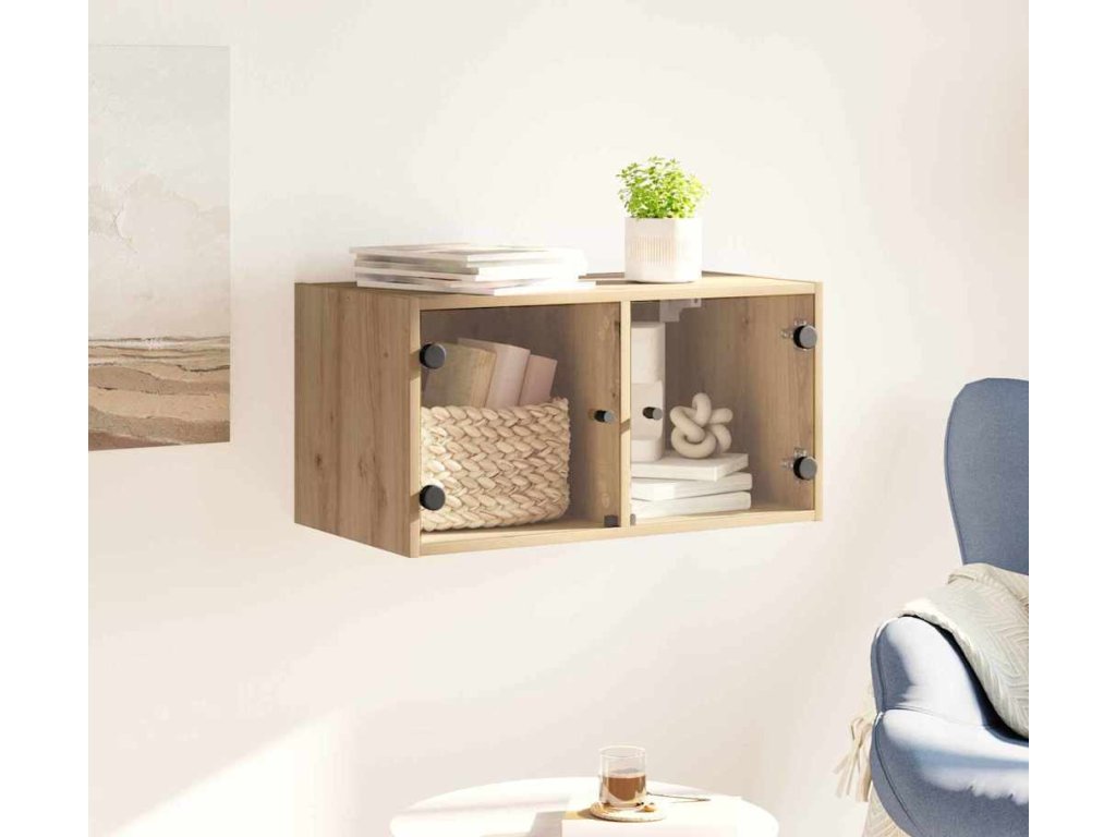 Tato moderní skříň na zeď s prosklenými dveřmi je skvělým úložným řešením pro každý moderní domov. S čistými liniemi a minimalistickým stylem nabízí funkčnost i vkus. Ideální pro organizaci a vystavení věcí v obývacích pokojích nebo jiných vnitřních prostorách, má hladkou obdélníkovou fasádu a skleněné dveře, které dodávají estetický prvek a zpřístupňují obsah.