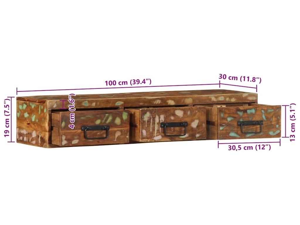 Nástěnná TV skříňka 100 x 30 x 19 cm masivní recyklované dřevo [4017465]