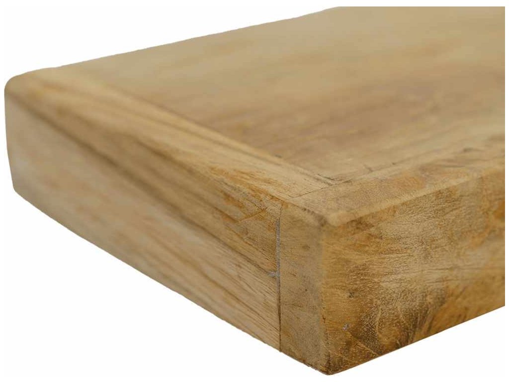 - Masivní teakové dřevo: Masivní teakové dřevo je krásný přírodní materiál. Prošlo již procesem smršťování, bylo uměle vysušené a poté ošetřeno rustikální povrchovou úpravou. Teakové dřevo je známé svou výjimečnou pevností a odolností vůči povětrnostním vlivům.