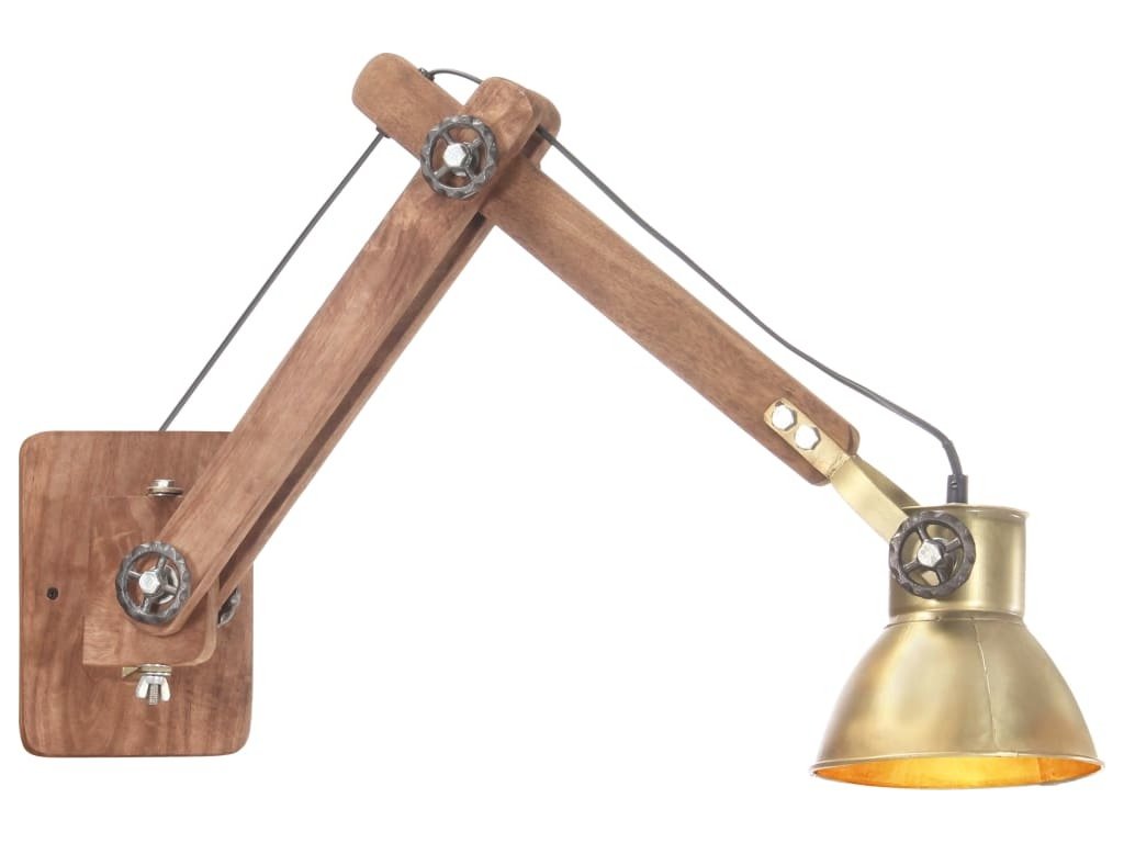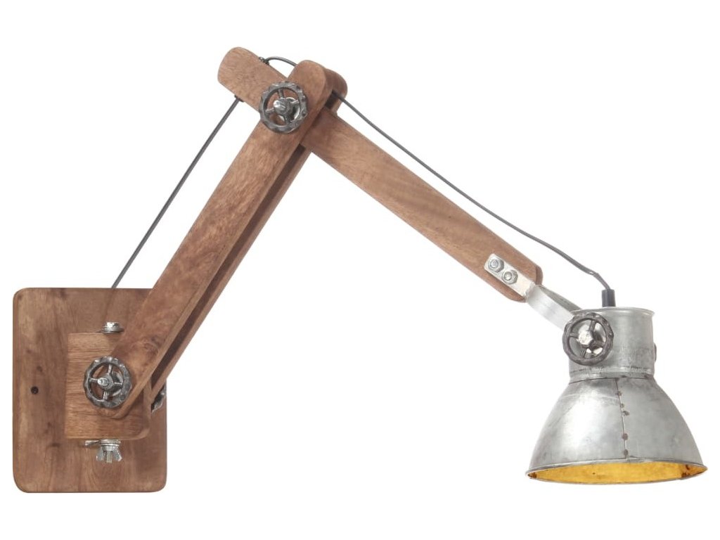 Nástěnné světlo je kombinované s polohovacím ramenem z masivního mangovníkového dřeva a železným stínidlem a je velmi odolné. Nastavitelné a flexibilní rameno vám umožní upevnit světlo v jakékoli požadované výšce. Starovenkovský vzhled s povrchovou úpravou ve stylu zvětralého dřeva a lota vintage povrchová úprava na stínidlu dodávají lampě industriální šarm. Tato lampa na čtení je napájená nízkým napětím a může být energeticky úsporná.