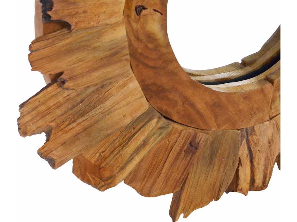 Rám zrcadla s designem okvětních lístků je ručně vyrobený z přírodního teakového dřeva. Zrcadlo má tudíž výrazný rustikální styl. Vypadá skvěle v každé místnosti domu a lze ho zavěsit i v koupelně. Zrcadlo je připravené k montáži na zeď, háček je již nainstalovaný na zadní desce.