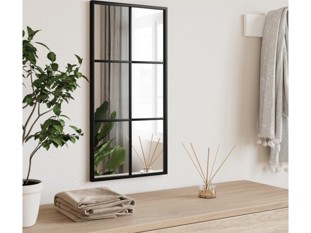 Nástěnné zrcadlo černé 30 x 60 cm obdélník železo [358641]