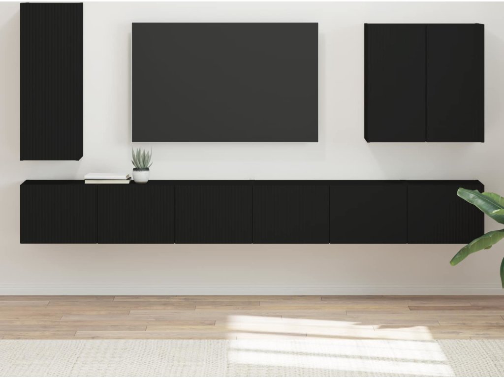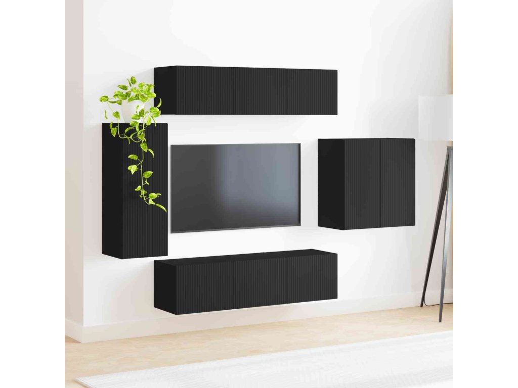 Sada televizního nástěnného kabinetu Nástěnný 6 pcs Černá [3408944]