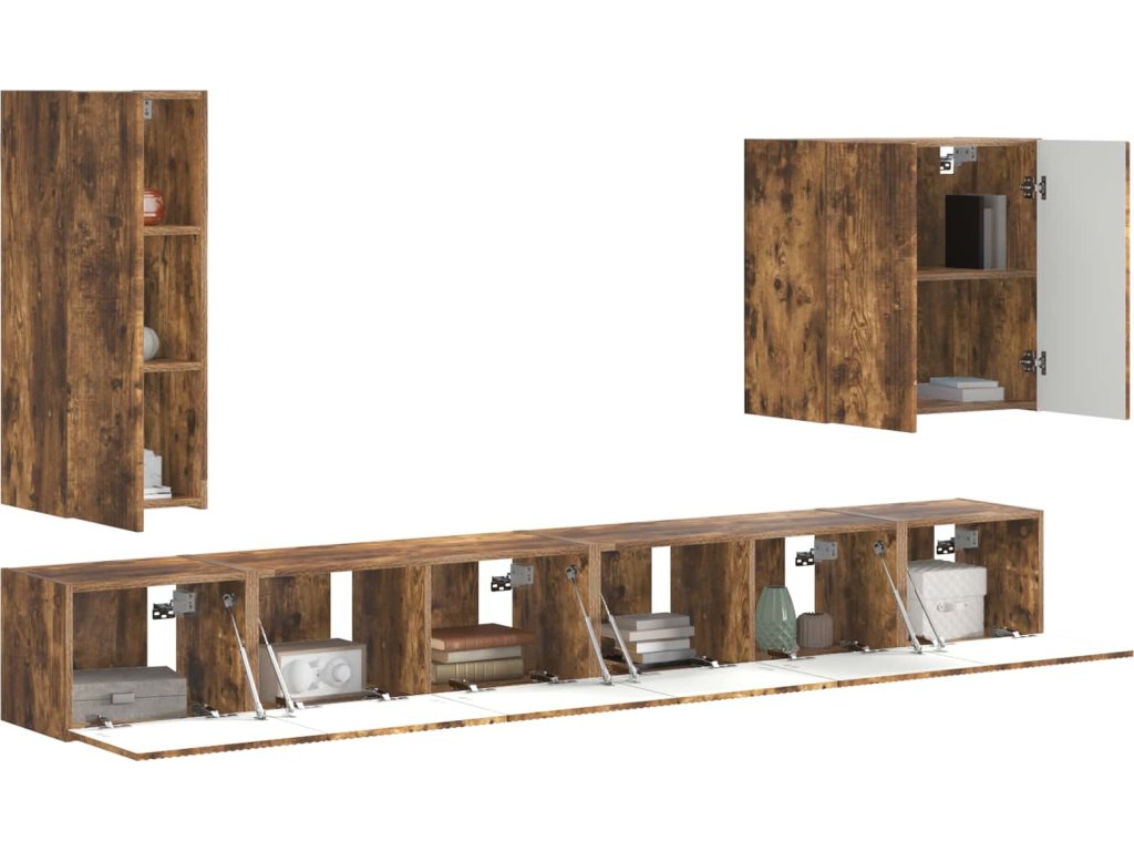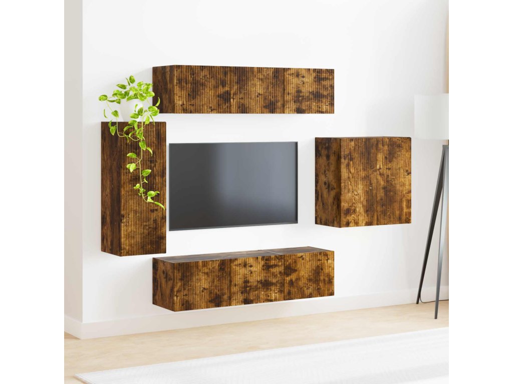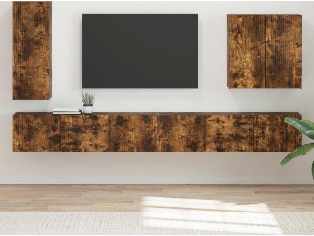 Sada televizního nástěnného kabinetu Nástěnný 6 pcs Kouřový dub [3408948]