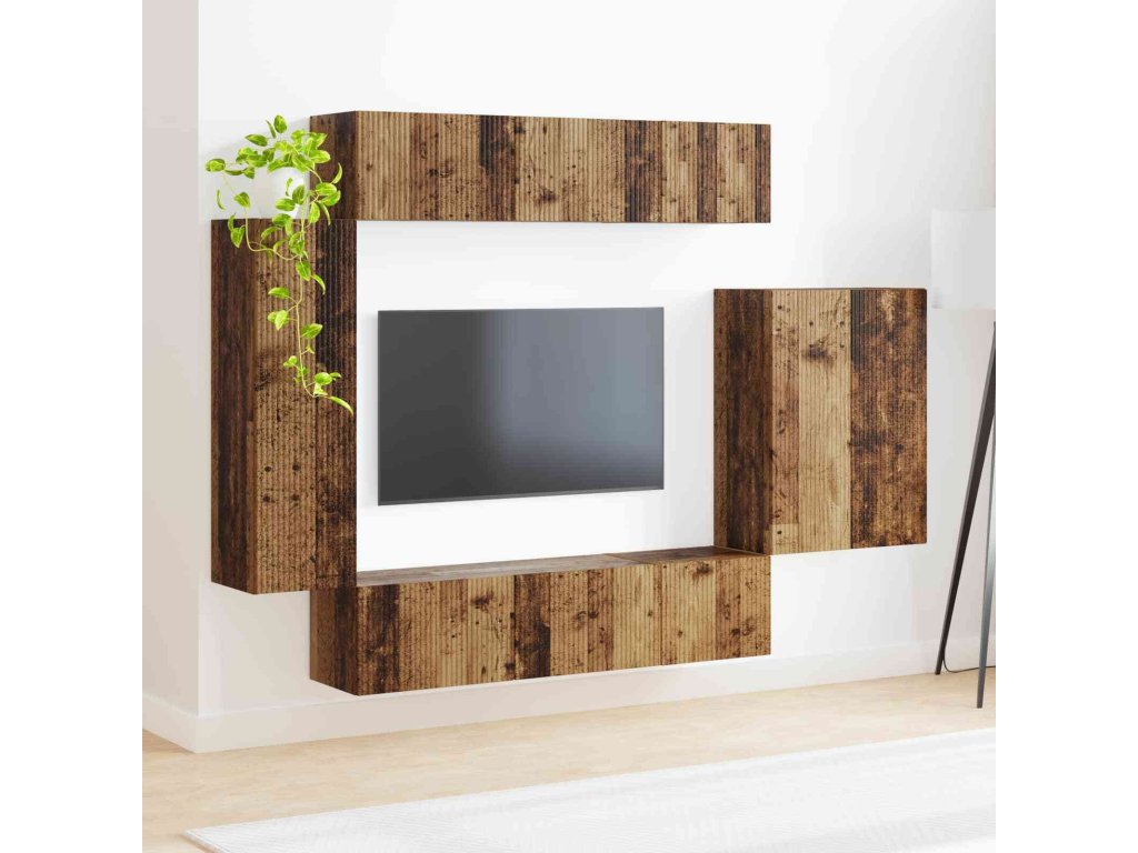 Sada televizního nástěnného kabinetu Nástěnný 6 pcs Staré dřevo [3408959]