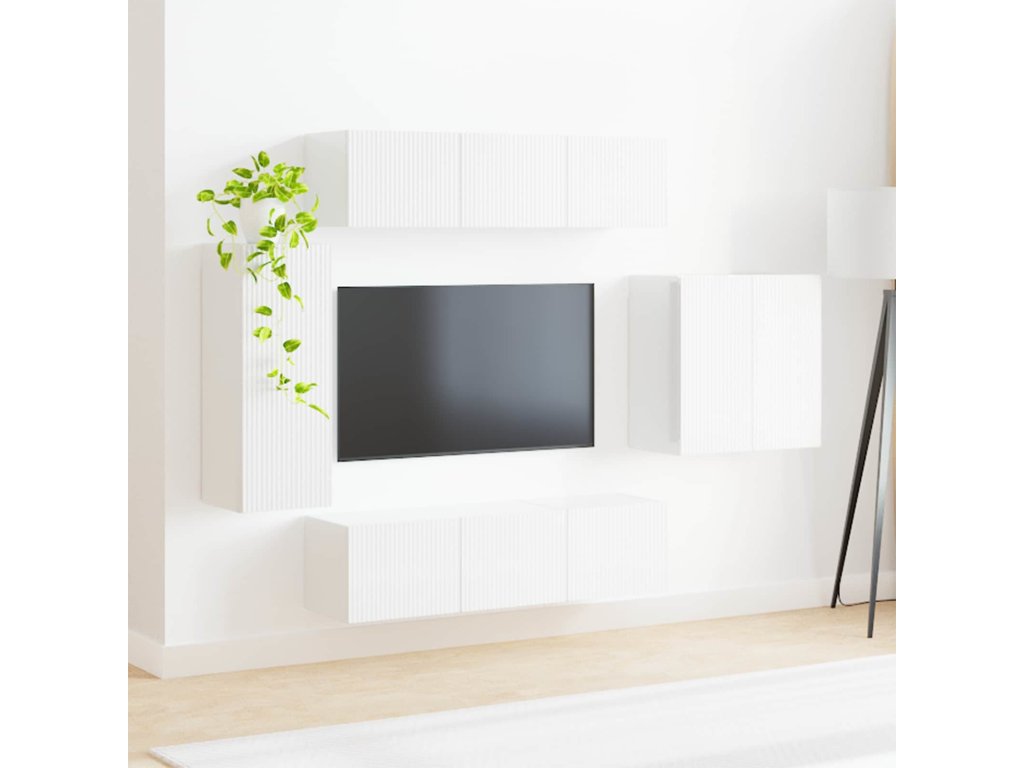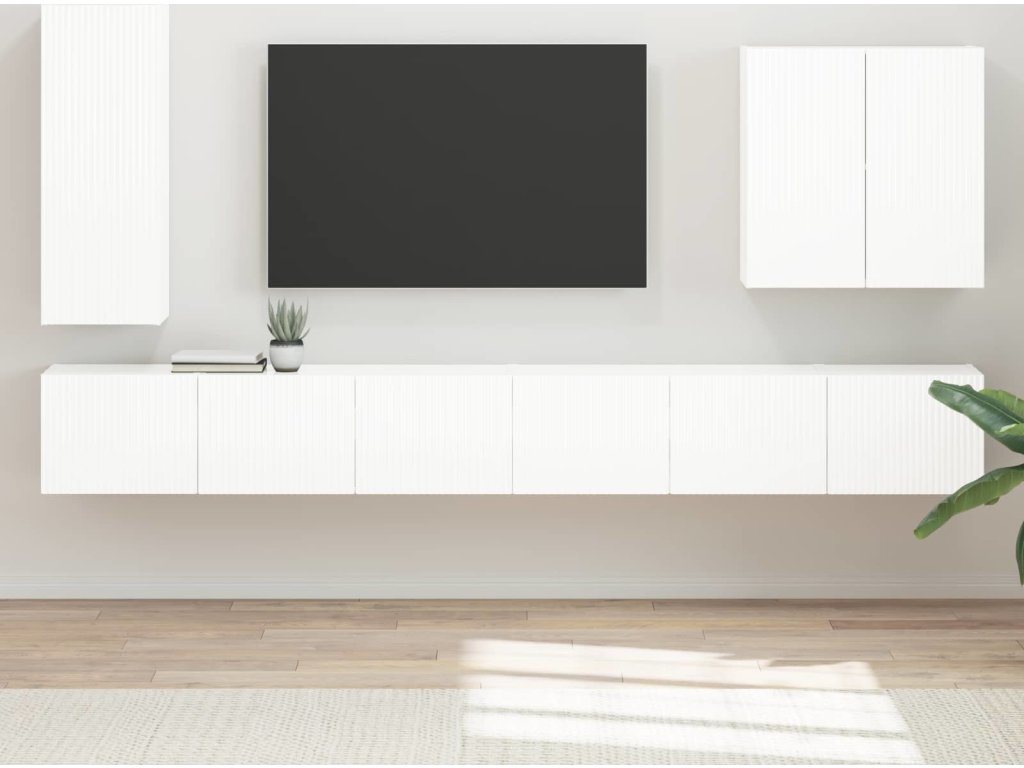 Sada televizního nástěnného kabinetu 6 pcs Vysoce lesklá bílá [3408947]